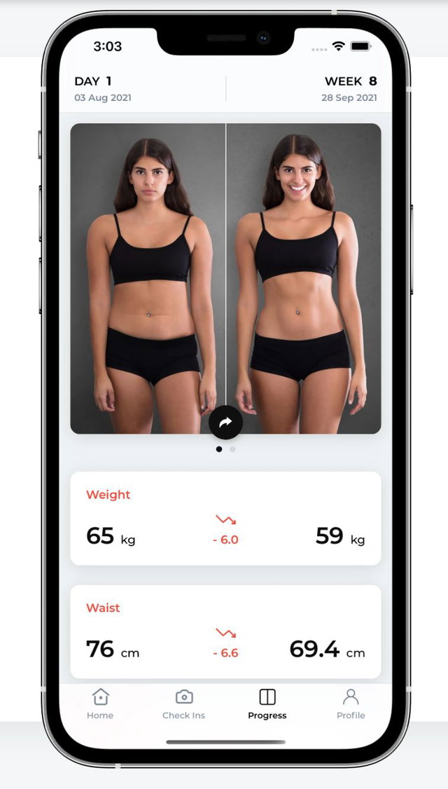 Check-in with weekly photos and measurements to keep track of your progress. Make amends whenever required.